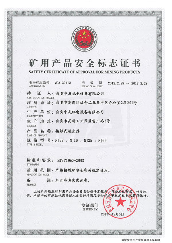 礦用產(chǎn)品安全標志證書