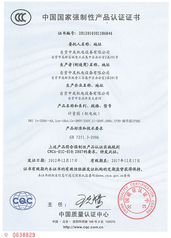 中國國家強(qiáng)制性產(chǎn)品認(rèn)證證書