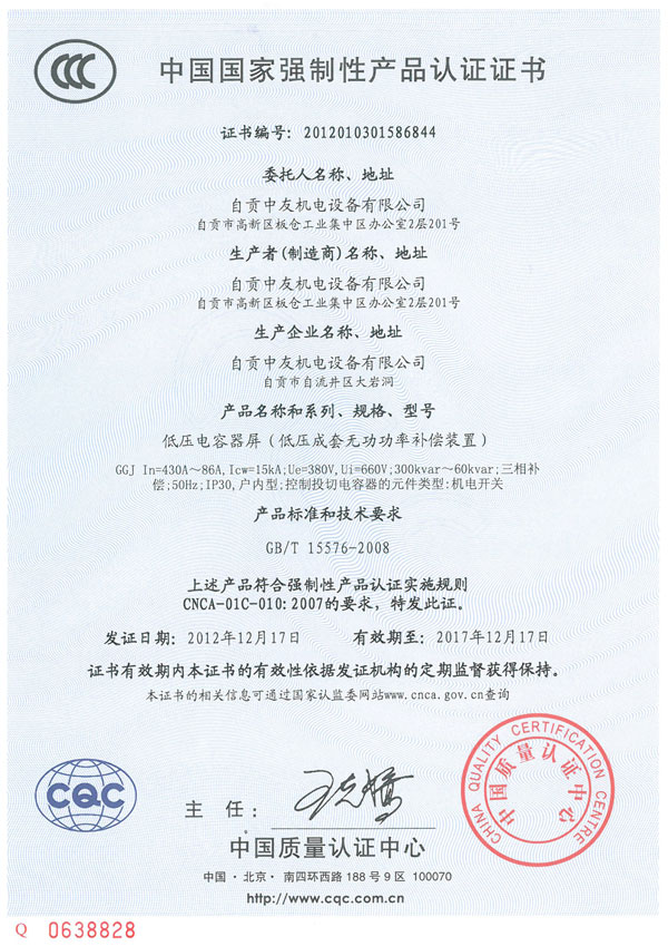 中國國家強(qiáng)制性產(chǎn)品認(rèn)證證書